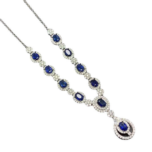 925 Silver Inlaid Natural Sri Lankan Sapphire Necklace