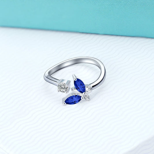 925 Sterling Silver Butterfly Ring with Sapphire Blue Crystal