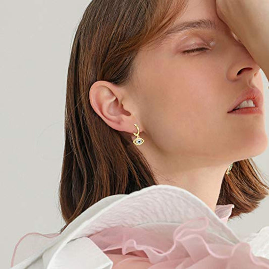 925 Sterling Silver Circle Drop Blue Eye Hypoallergenic Earrings Evil Eye Jewelry