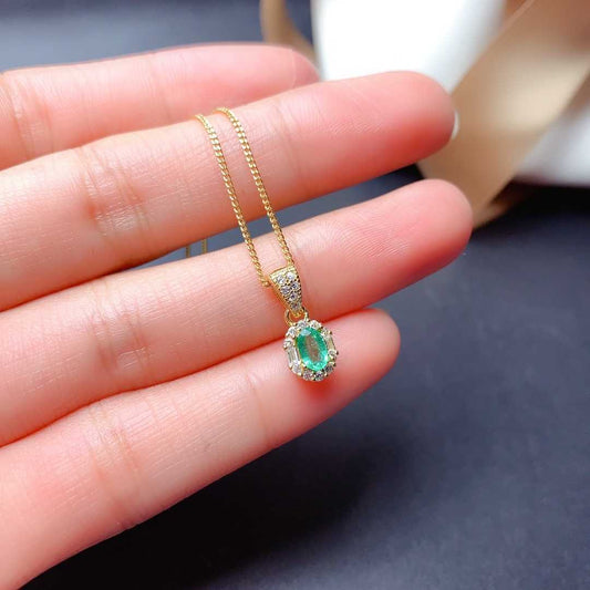 Natural Emerald Necklace Women's 925 Silver Full Set Delicate Light Luxury Pendant Auspicious Cloud Safety Lock Pendant Jewelry