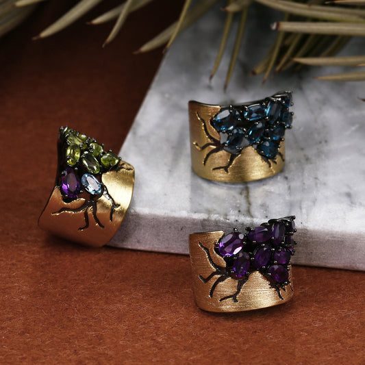 Craft Retro Style S925 Sterling Silver Inlaid Colored Gems Amethyst Ring