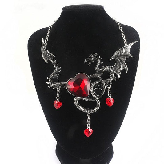 Heart-shaped sapphire dragon necklace