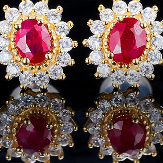 Natural Mozambique Ruby Garnet Stud Earrings