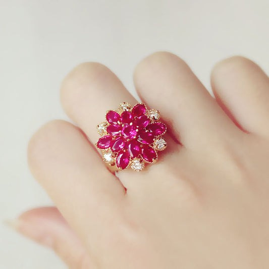 Ruby Multi-layer Flower Ring Necklace Women
