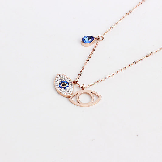 Europe and the United States titanium steel rose gold demon eye necklace short clavicle chain female personality wild temperament necklace