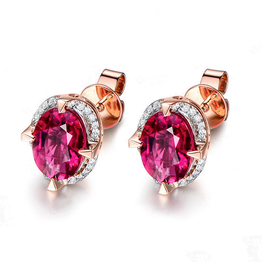 Women's Full Diamond Four-claw Ruby Earrings