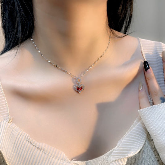 Light Luxury Love Ruby Pendant Necklace Niche