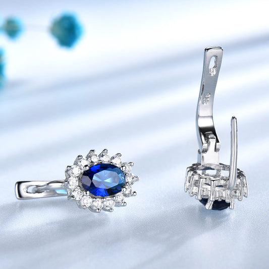 Natural Sapphire Stud Earrings S925 Silver Inlaid Main Stone