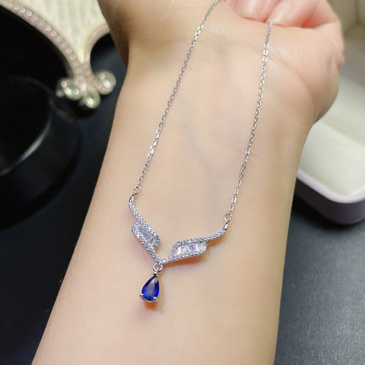 Sapphire Diamond Pendant 925 Sterling Silver Party Wedding Pendants Chain Necklace For Women Charm Jewelry