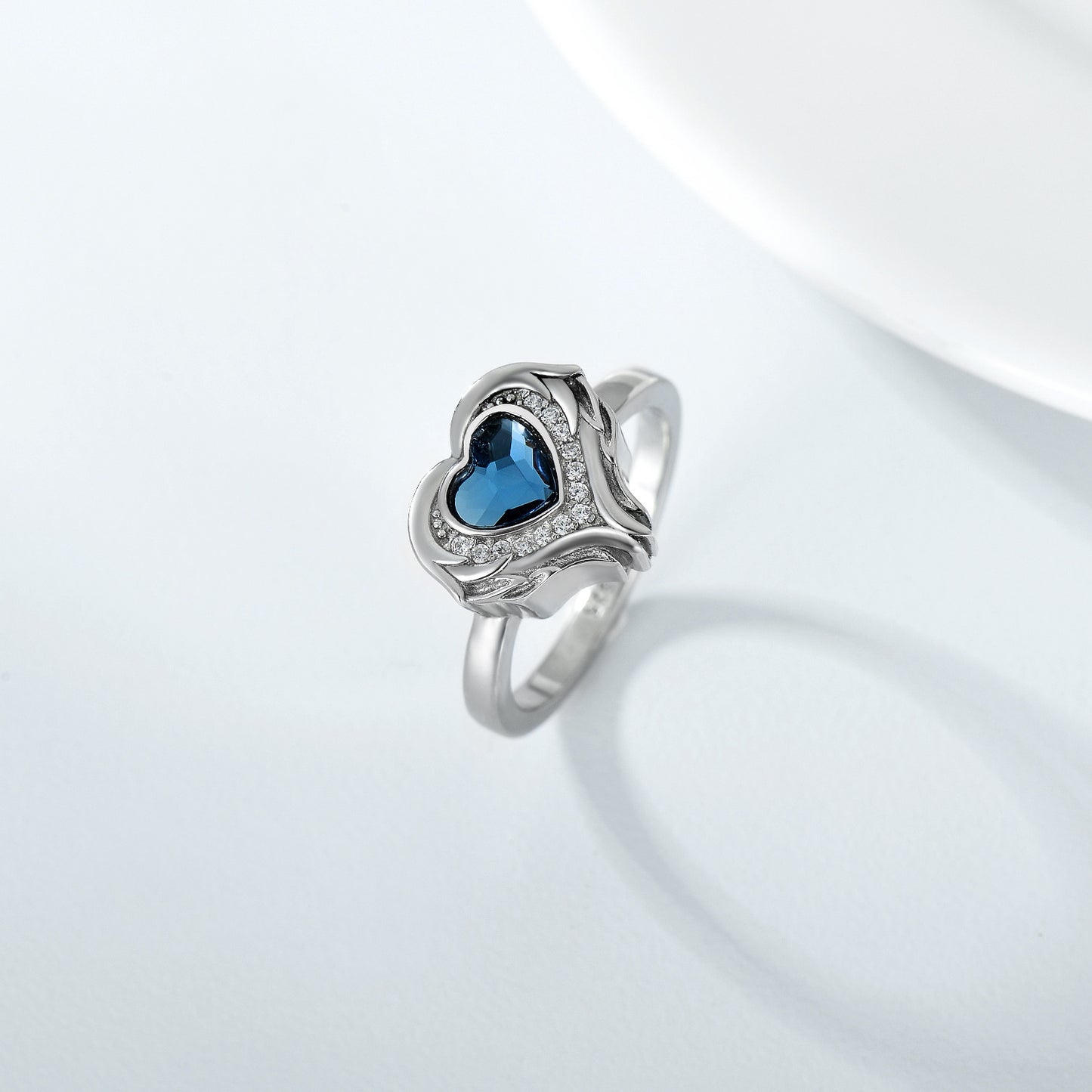 925 Sterling Silver Angel Wing Heart Cremation Urn Holds Loved Ones Ashes Ring